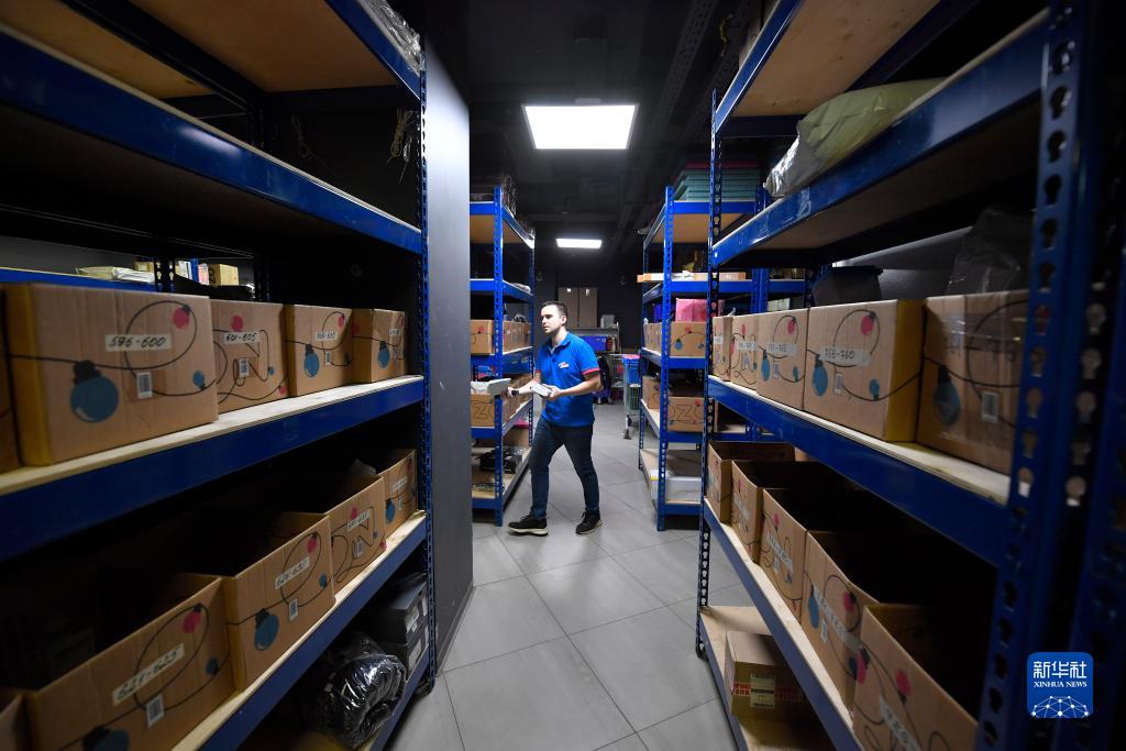 11月8日,在俄羅斯首都莫斯科,工作人員在一家電商平臺(tái)倉(cāng)庫(kù)內(nèi)分揀貨物。