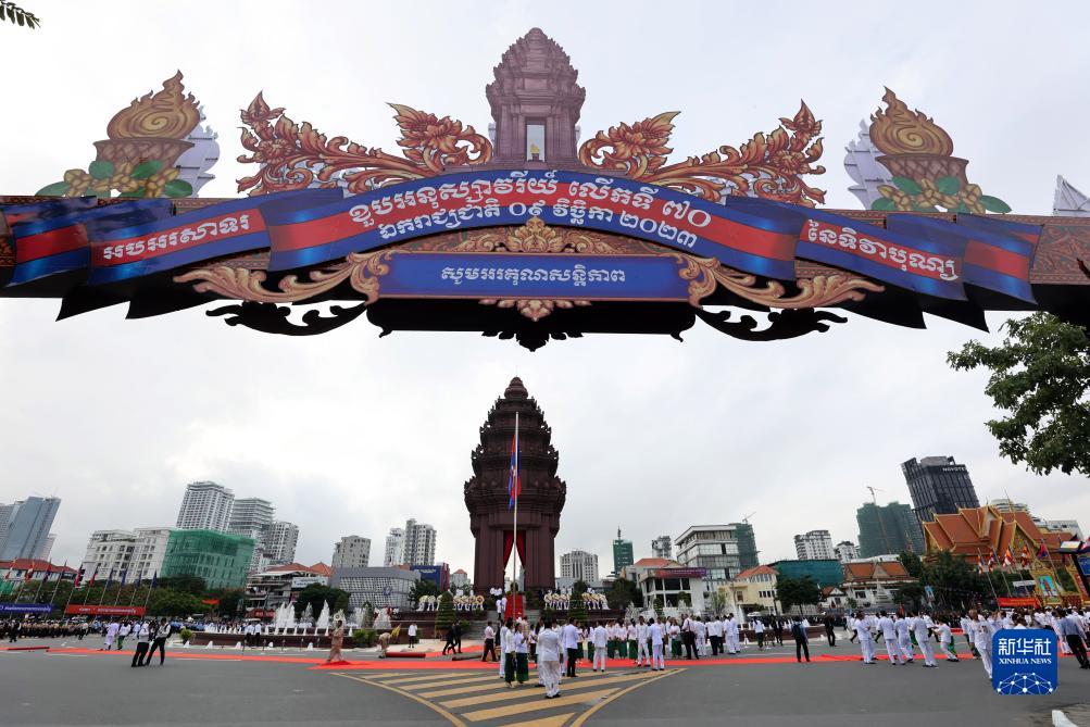 柬埔寨9日舉行隆重儀式慶祝獨立70周年。柬埔寨國王西哈莫尼、首相洪瑪奈等領導人,多國駐柬使節和當地各界民眾參加慶祝活動。