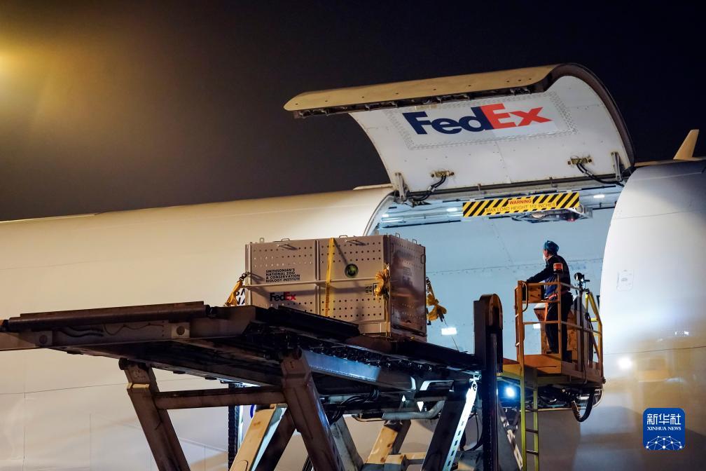 11月9日晚,旅美大熊貓抵達成都雙流國際機場。
