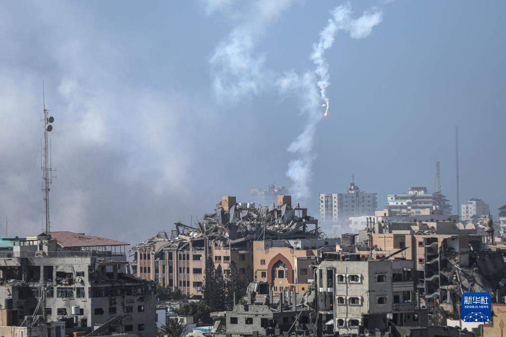 11月9日,加沙城建筑遭以色列軍隊空襲后升起濃煙。
