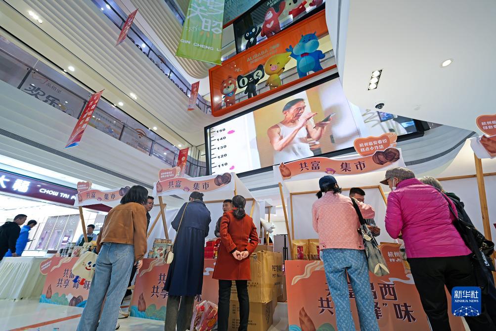 11月10日,杭州市民在“清涼峰味”共富品牌推介會上品嘗和選購特色農產品。