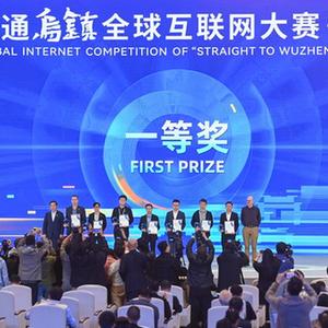 11月10日,獲得2023“直通烏鎮(zhèn)”全球互聯(lián)網(wǎng)大賽一等獎的代表在頒獎典禮上。