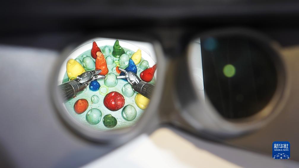 11月7日在第六屆進博會醫療器械及醫藥保健展區復星健康展臺拍攝的國產達芬奇手術機器人模擬手術視角。