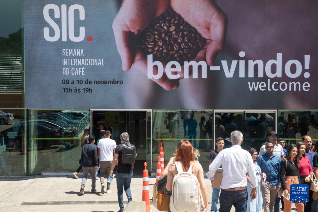11月9日,在巴西貝洛奧里藏特,參觀者進入咖啡周展會場館。
