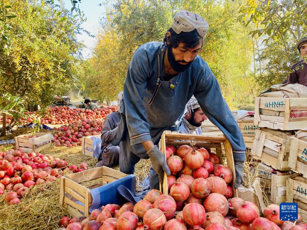 11月10日,在阿富汗南部坎大哈省,農民整理新收獲的石榴。