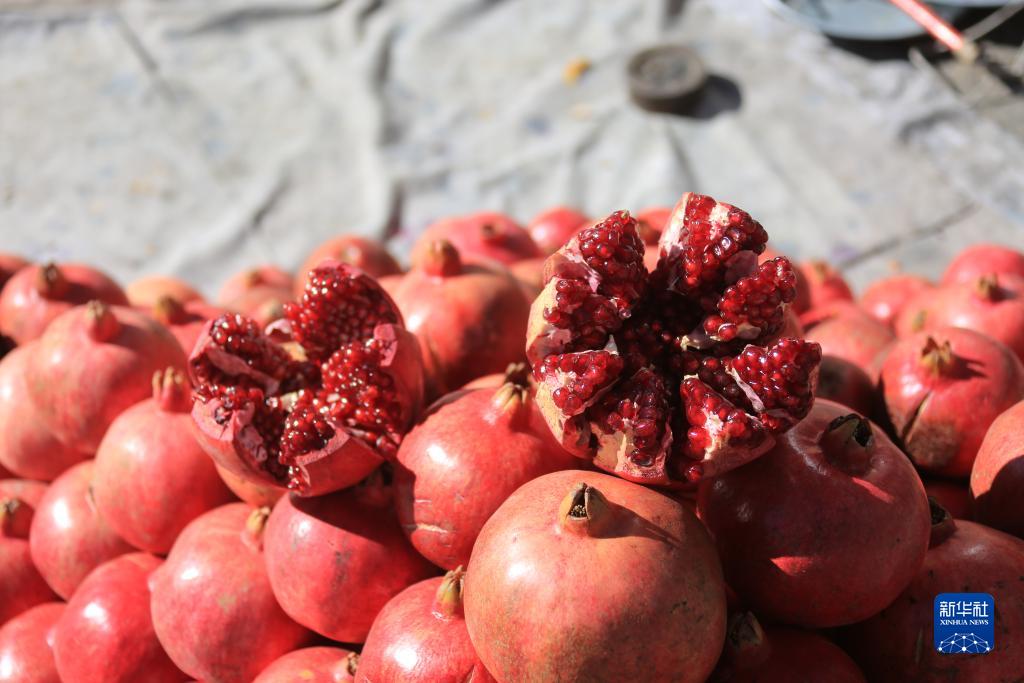 11月10日,在阿富汗首都喀布爾,一處攤位售賣產自阿富汗南部坎大哈省的石榴。