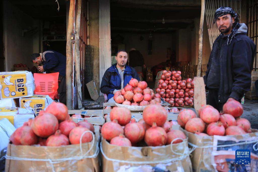 11月10日,在阿富汗首都喀布爾,一處攤位售賣產自阿富汗南部坎大哈省的石榴。