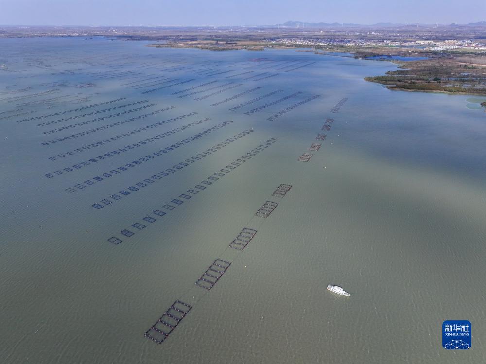 這是11月10日拍攝的連云港石梁河水庫標準化網箱養殖設施(無人機照片)。