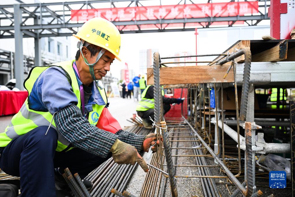 當日,中鐵建工集團南京大尺寸硅外延材料產業化項目現場舉行華夫板安裝職業技能競賽,36名工人比拼技能,一展身手。