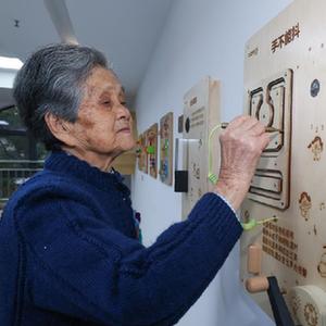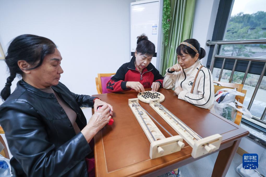 11月10日,在云和縣百齡幫鳳凰家園長者養護中心的老年木玩活動室內,老人們在玩益智木玩。云和縣民政部門積極在多個養老中心推進木玩活動室的建設,活動室以益智類、運動類、康復類、康養類等木制玩具為媒介,幫助老年人動手動腦,保持大腦健康活力。