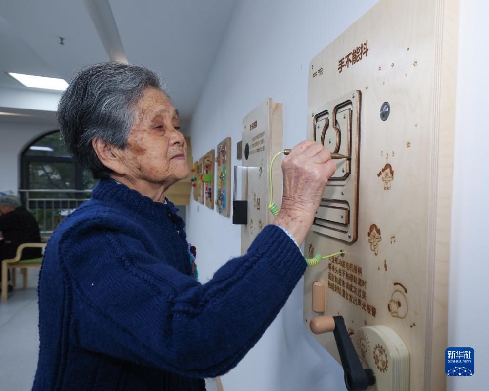11月10日,在云和縣百齡幫鳳凰家園長者養護中心的老年木玩活動室內,一名91歲的老人在玩益智木玩。