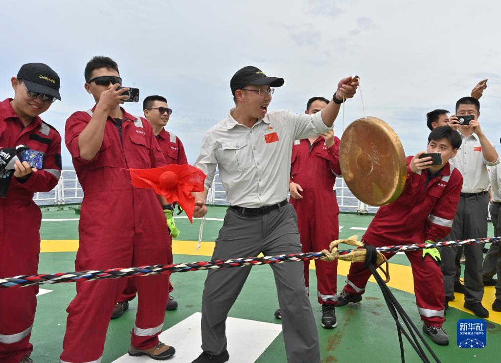 11月10日,中國(guó)第40次南極考察隊(duì)在“雪龍2”號(hào)上舉行穿越赤道紀(jì)念活動(dòng)。圖為考察隊(duì)副領(lǐng)隊(duì)魏福海敲鑼宣布拔河比賽開(kāi)始。