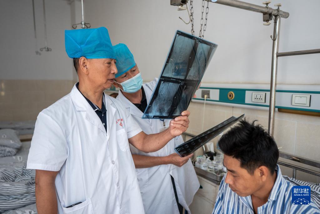在畹町仁慈醫(yī)院,沈坤(左)在查房時查看病人病情(10月29日攝)。