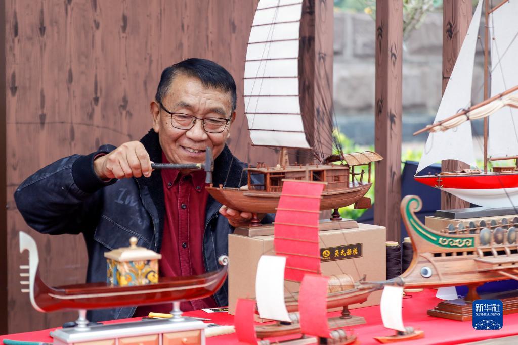 11月10日,非遺傳承人吳培在第六屆中國非物質文化遺產傳統技藝大展上展示“吳氏船模”非遺傳統技藝。
