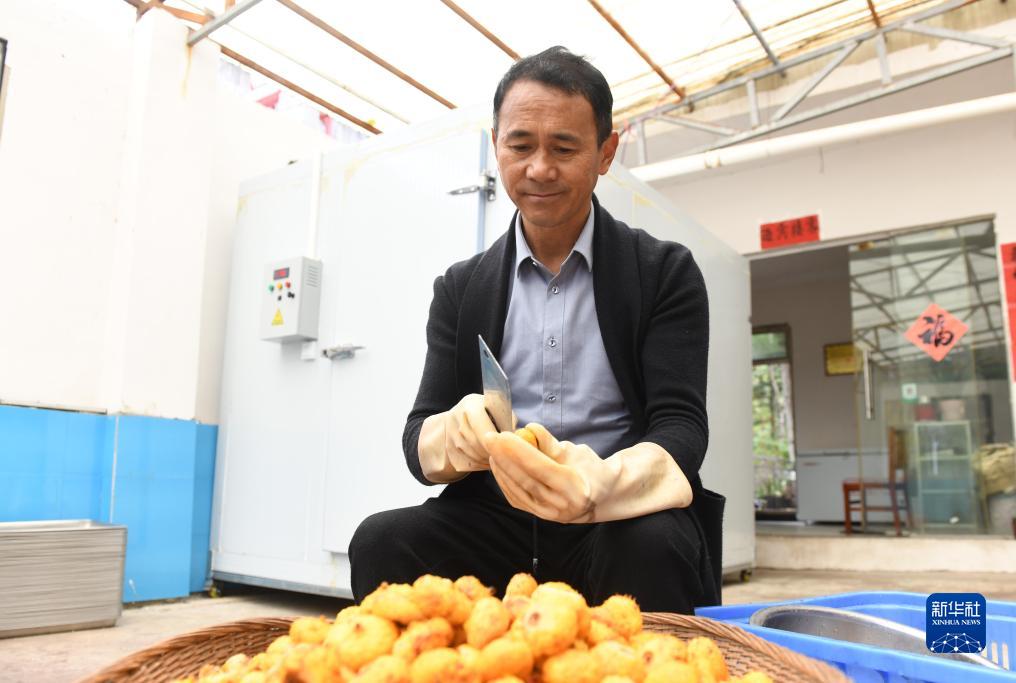 11月8日,貴州龍里縣谷腳鎮茶香村刺梨種植大戶燕啟富給刺梨切片。