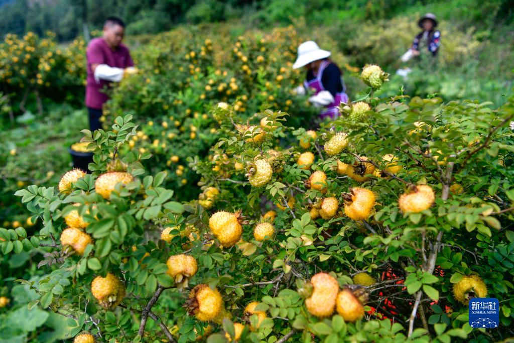 農民在貴州省龍里縣谷腳鎮茶香村采摘刺梨(9月1日攝)。