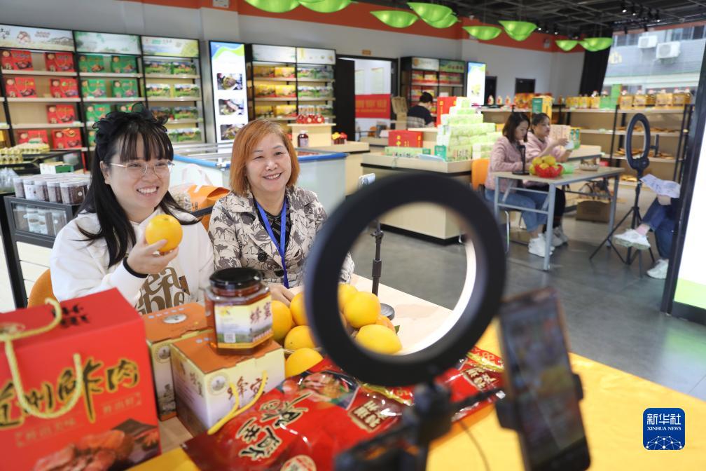 11月11日,在湖南省永州市道縣電子商務孵化中心,主播在網絡平臺上推廣當地農特產品。