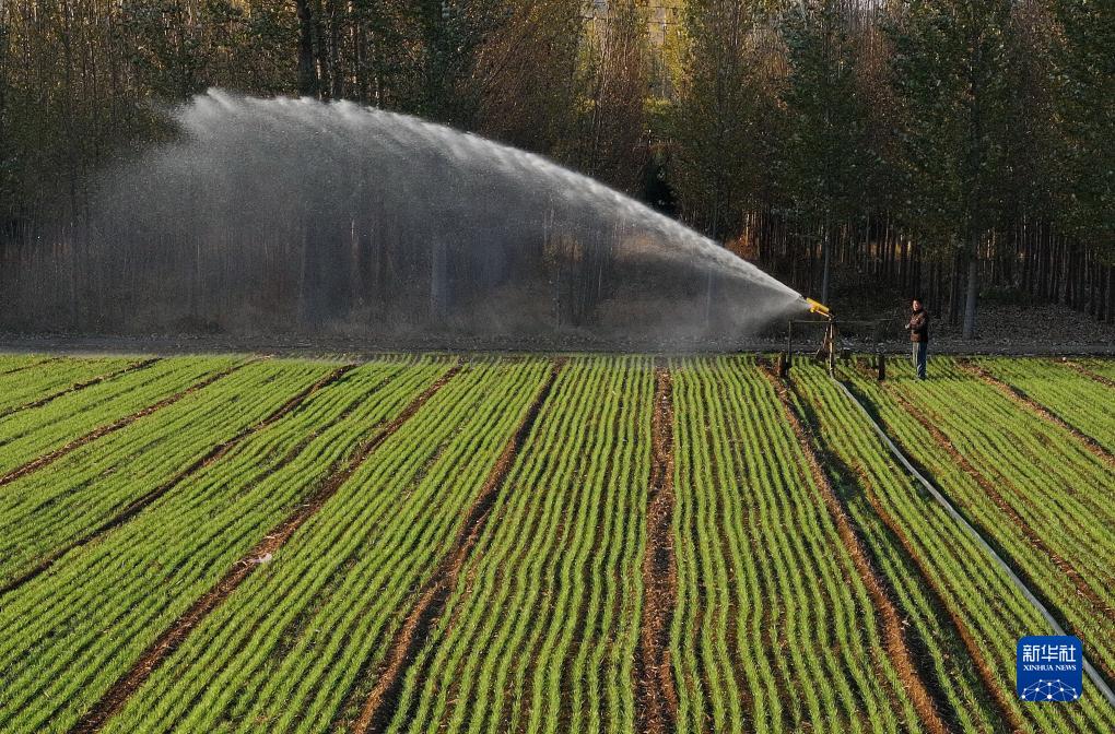 眼下正值冬小麥澆灌封凍水時節,河北省灤州市的農民搶抓農時,采用噴灌、微噴等節水設備給冬小麥澆水,為來年糧食豐收打好基礎。