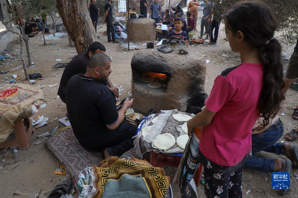 11月11日,在加沙地帶南部城市汗尤尼斯,志愿者為無家可歸的巴勒斯坦人制作大餅。