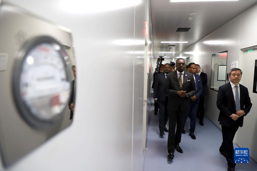 11月10日,在埃塞俄比亞首都亞的斯亞貝巴,中非雙方代表參觀中國援建的非洲疾病預防控制中心實驗室。