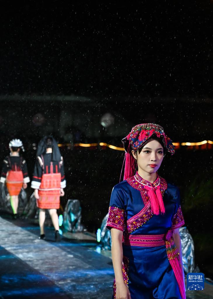 當日,海南省五指山市民族時裝“村秀”特別專場活動在五指山市通什鎮小島公園舉辦。由五指山各鄉鎮選出的民族時裝“村秀”代表,以黎族苗族文化、民間技藝等為內容走秀,向人們展現鄉村特色與民族文化的傳承創新。