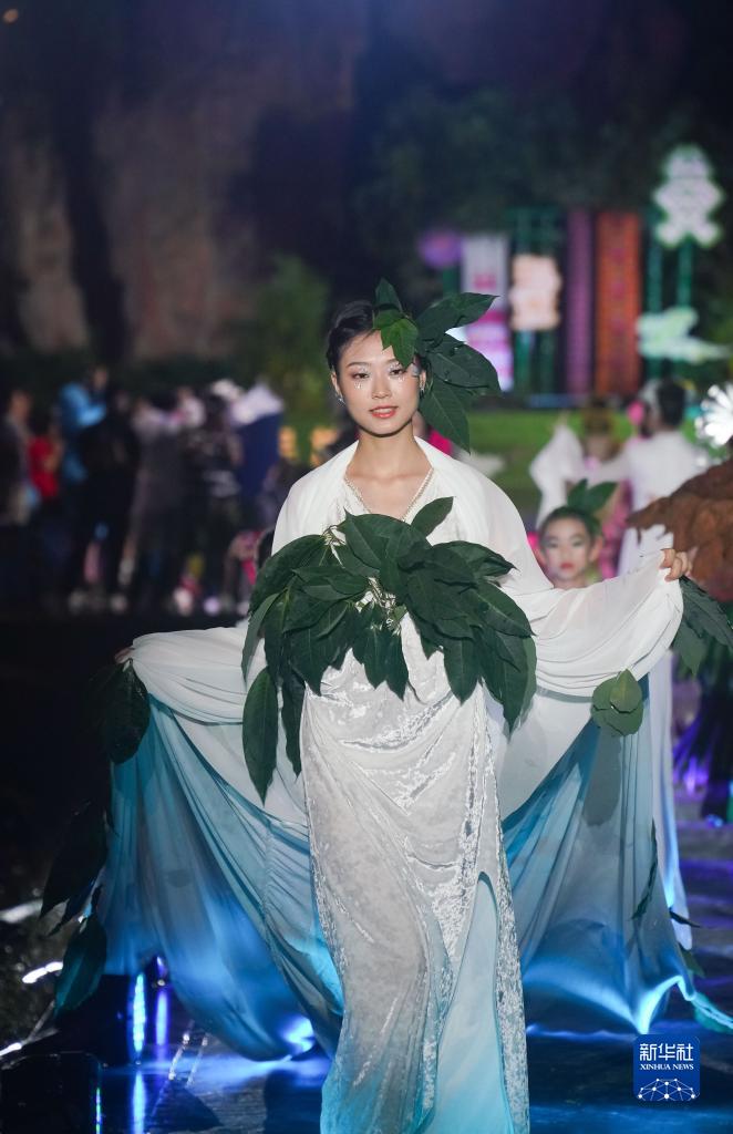 當日,海南省五指山市民族時裝“村秀”特別專場活動在五指山市通什鎮小島公園舉辦。由五指山各鄉鎮選出的民族時裝“村秀”代表,以黎族苗族文化、民間技藝等為內容走秀,向人們展現鄉村特色與民族文化的傳承創新。
