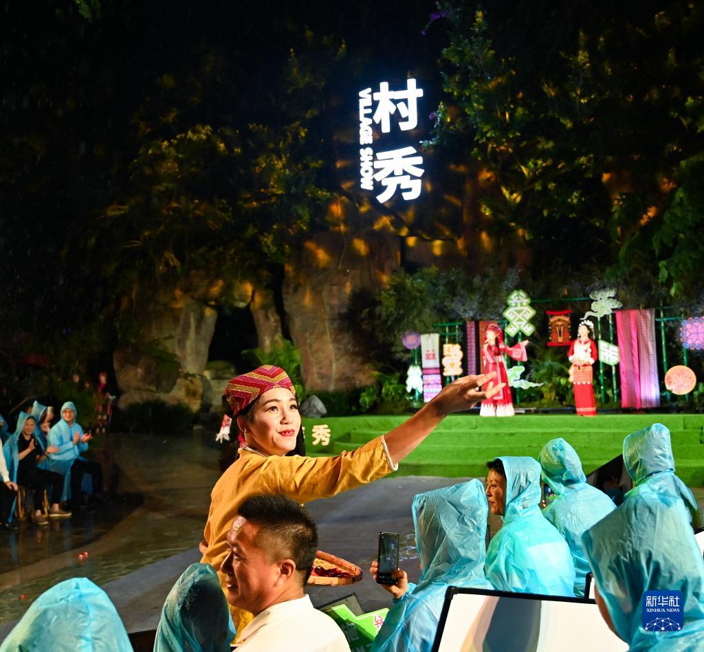 當日,海南省五指山市民族時裝“村秀”特別專場活動在五指山市通什鎮小島公園舉辦。由五指山各鄉鎮選出的民族時裝“村秀”代表,以黎族苗族文化、民間技藝等為內容走秀,向人們展現鄉村特色與民族文化的傳承創新。