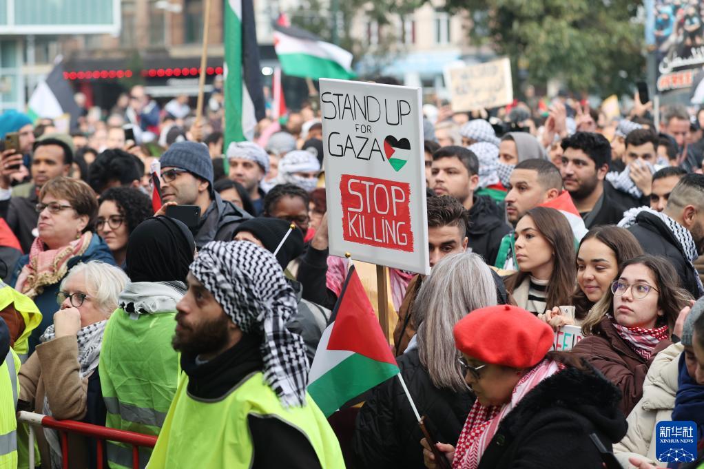 當日,眾多巴勒斯坦支持者在比利時布魯塞爾集會,呼吁盡快實現加沙停火 。