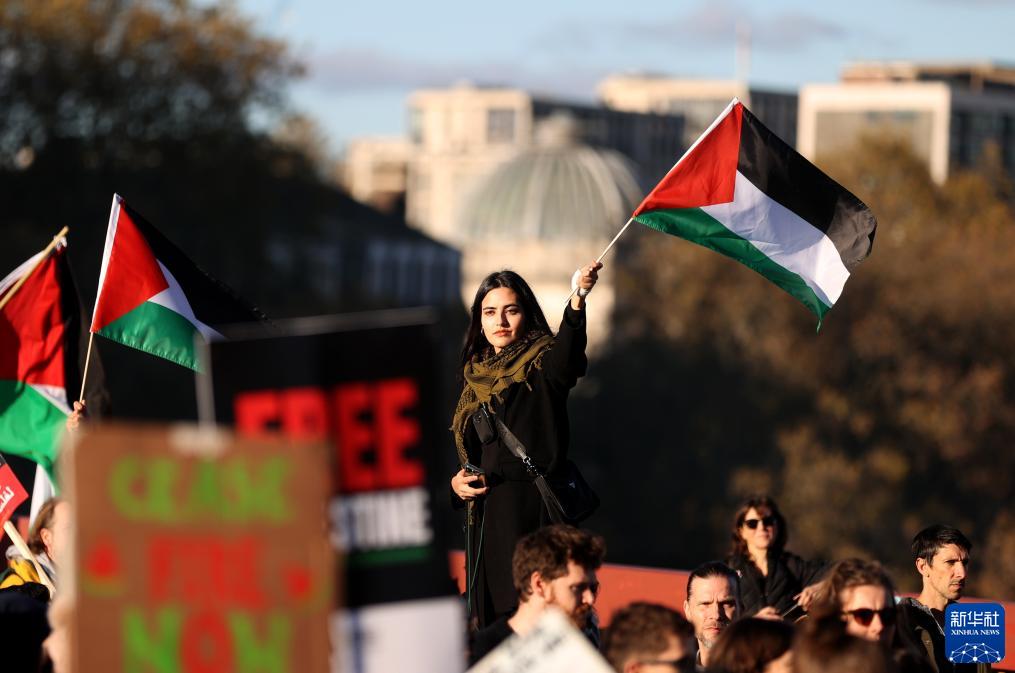 當日,數(shù)十萬民眾在英國倫敦參加聲援巴勒斯坦的游行集會,呼吁盡快實現(xiàn)加沙停火。