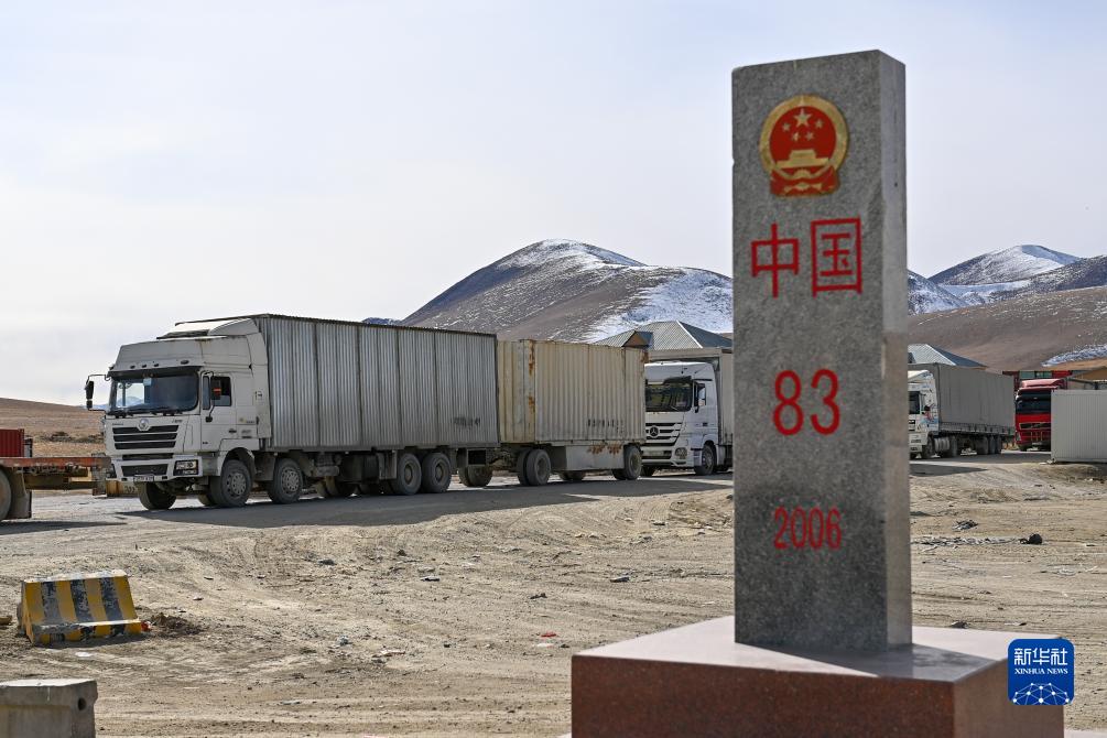 入境貨車進入新疆卡拉蘇口岸(11月6日攝)。