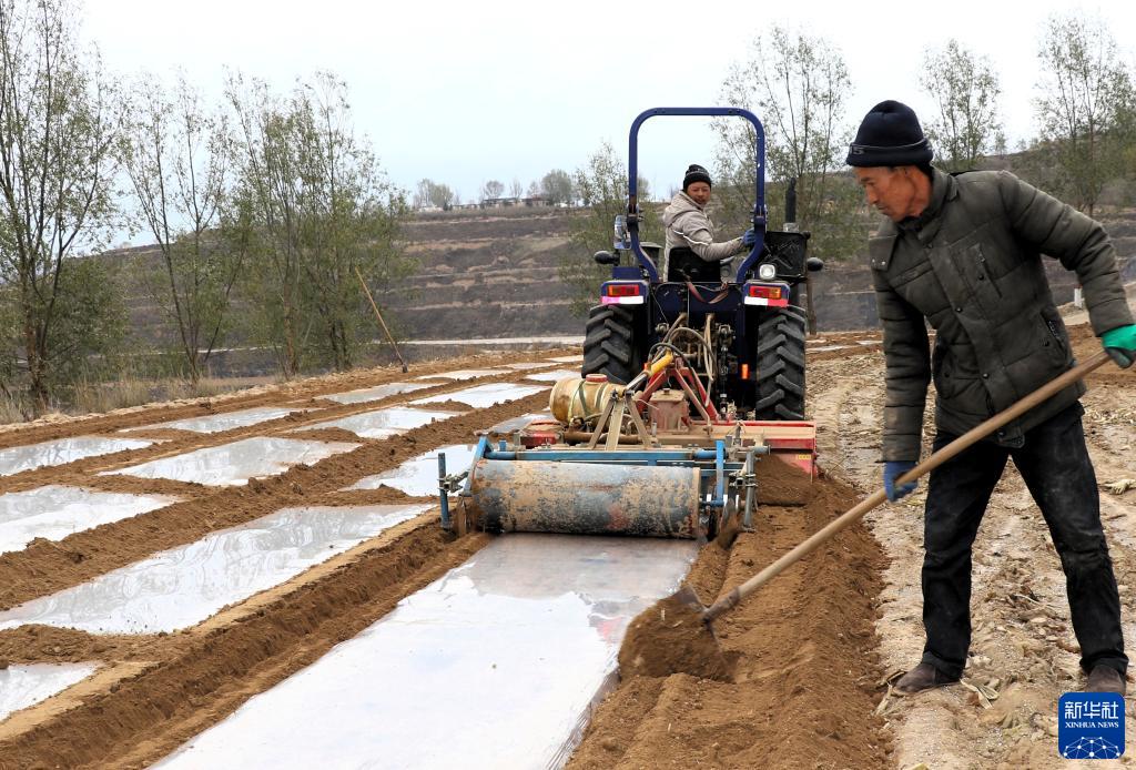 連日來,在位于黃土高原的甘肅省平涼市靜寧縣,農戶抓住秋冬季節降水較多、土壤墑情較好、地面尚未封凍的有利時機,對耕地進行覆膜作業,為來年春播打下基礎。