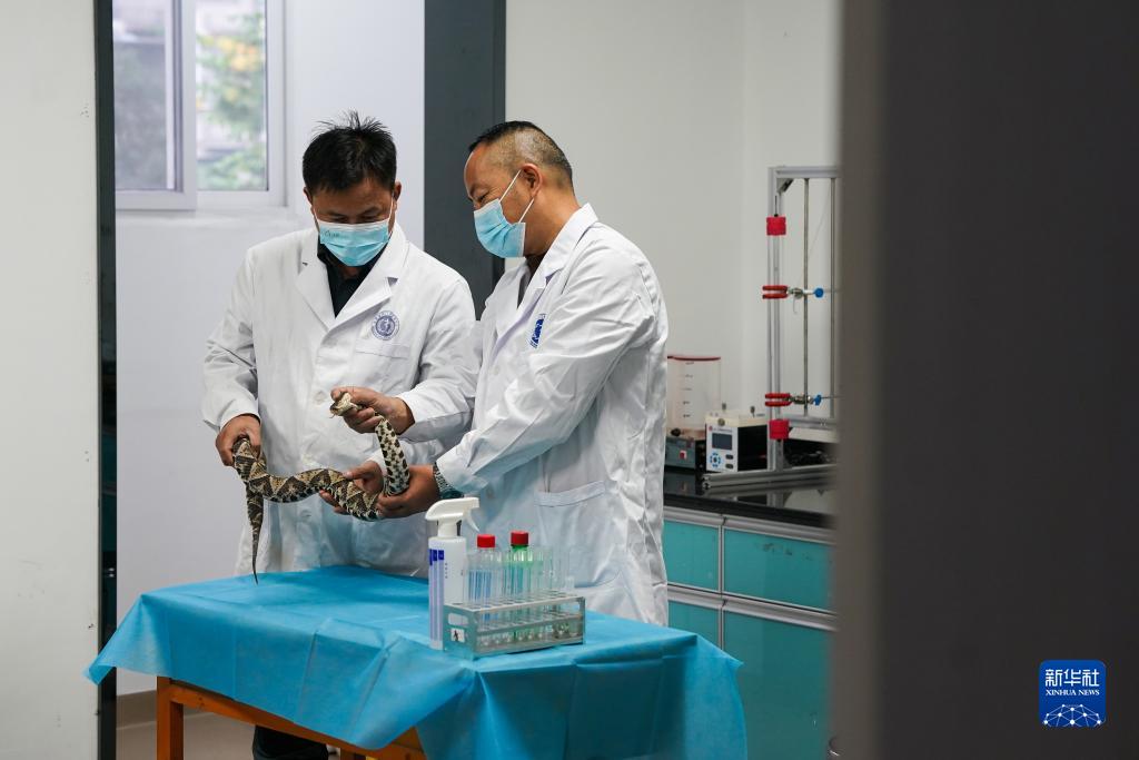 11月8日,在安徽省祁門蛇傷研究所,工作人員取五步蛇毒用于研究。