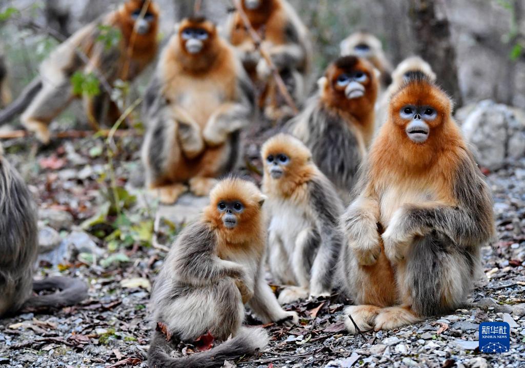 初冬時節,在四川省九寨溝縣境內的四川白河國家級自然保護區,野生川金絲猴玩鬧嬉戲,萌態十足。