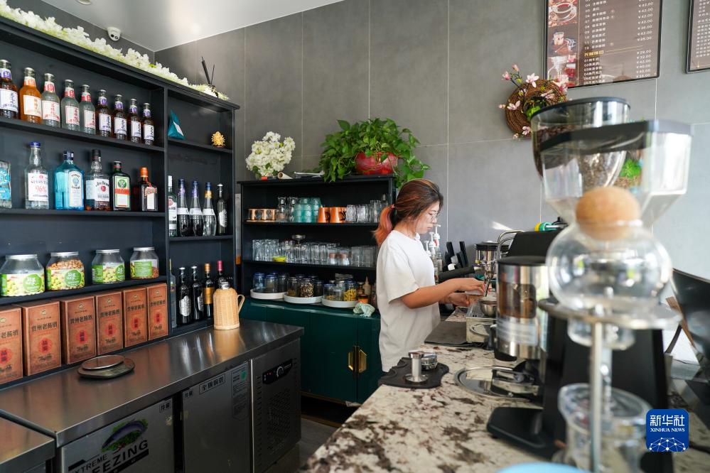 在樹山村一處民宿,工作人員在制作咖啡(11月2日攝)。