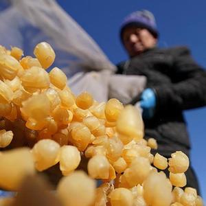 11月13日,秦皇島市昌黎縣團(tuán)林鄉(xiāng)的扇貝養(yǎng)殖戶在將晾曬好的扇貝柱裝箱。