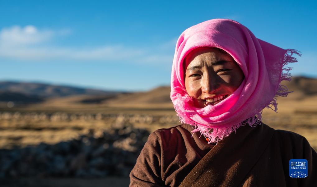 這是生活在西藏當(dāng)雄縣納木湖鄉(xiāng)達(dá)布村的牧民芝嘎措姆(11月10日攝)。