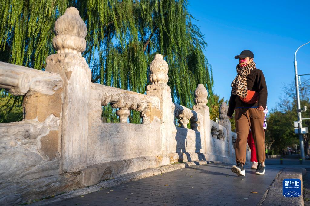 行人走過北京萬寧橋(11月6日攝)。萬寧橋位于北京地安門外大街中部、什剎海東岸,是北京中軸線上最古老的橋梁,至今已有700多年歷史。作為北京中軸線與大運河玉河段的交匯點,自元代始建起,萬寧橋一直承擔著南北交通的重要功能。