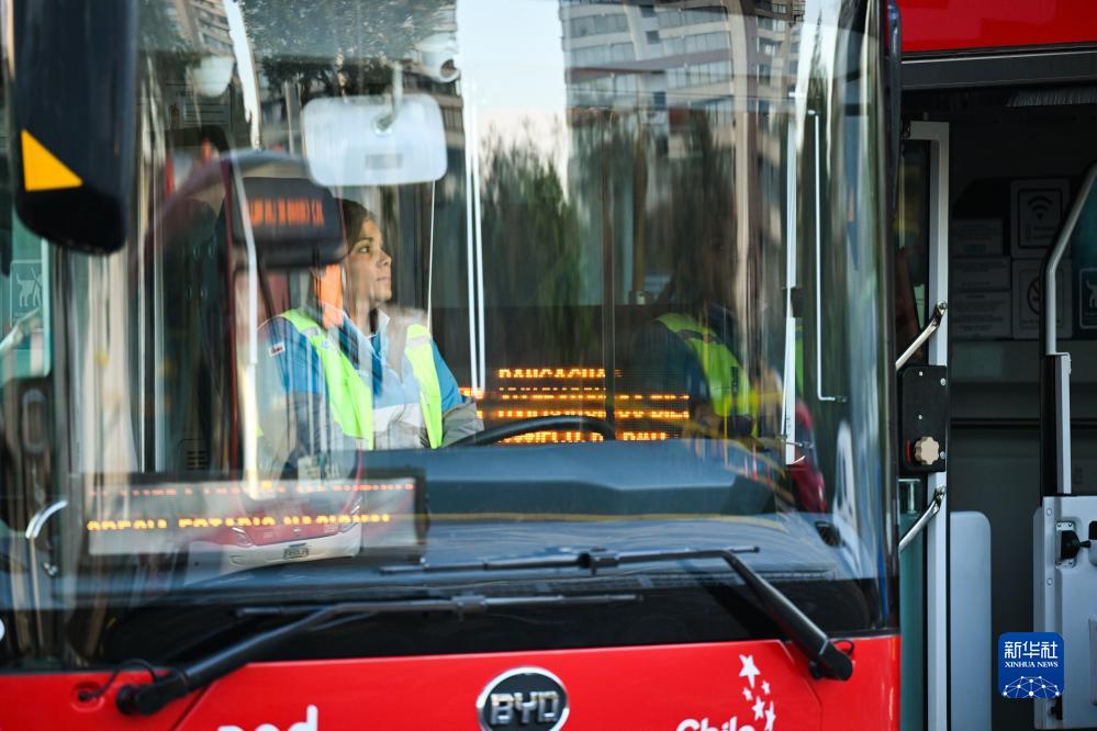 11月2日,在智利首都圣地亞哥,520路新能源公交車司機寶拉準備發車。
