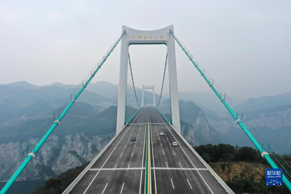 11月24日,車輛從貴金高速公路金烽烏江大橋上通過(無人機(jī)照片)。