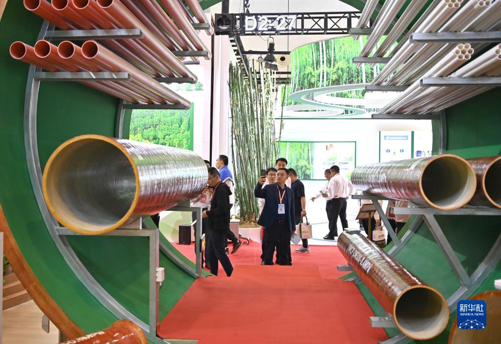 11月24日,觀眾在南寧國際會展中心參觀用竹纏繞復合材料制造的產品。
