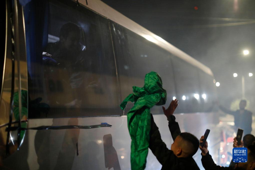 11月24日,在約旦河西岸城市拉姆安拉附近的拜圖尼亞鎮,人們慶祝被關押的巴勒斯坦人獲釋。