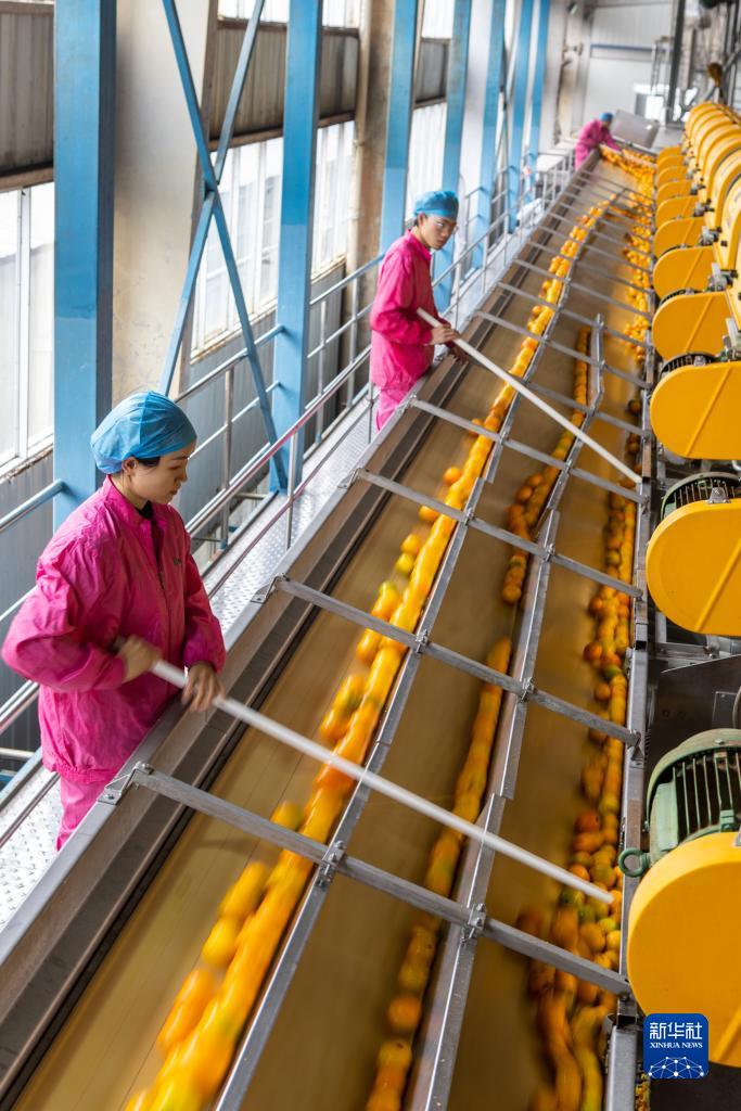 11月24日,在重慶市開州區(qū),工人在重慶天邦食品有限公司的榨汁車間作業(yè)。