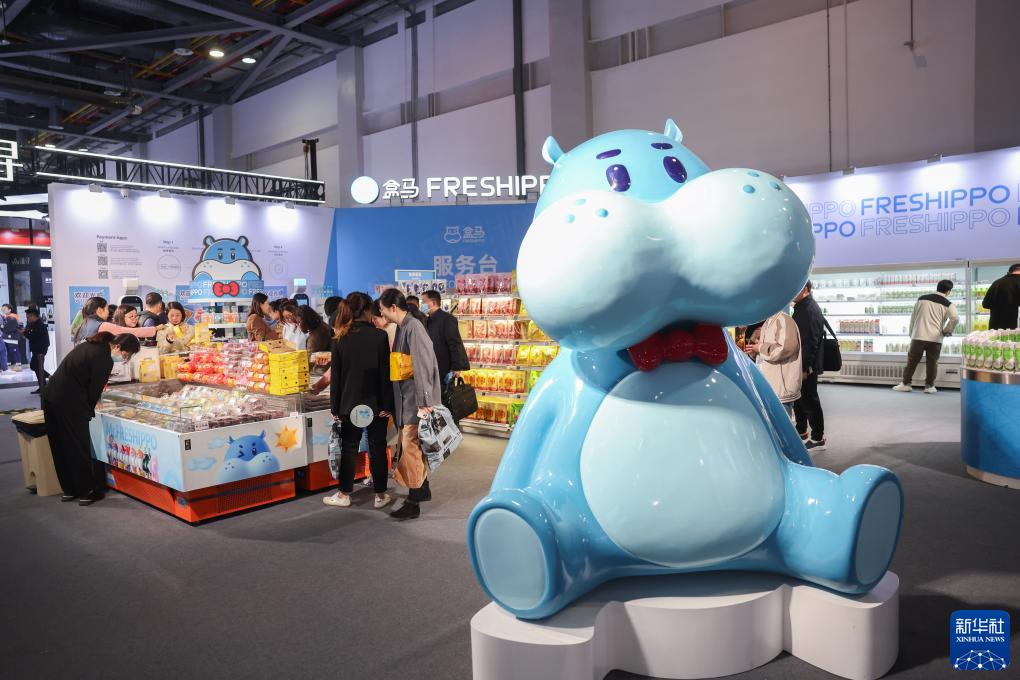 這是第二屆全球數字貿易博覽會的絲路電商館的商品銷售展臺(11月24日攝)。