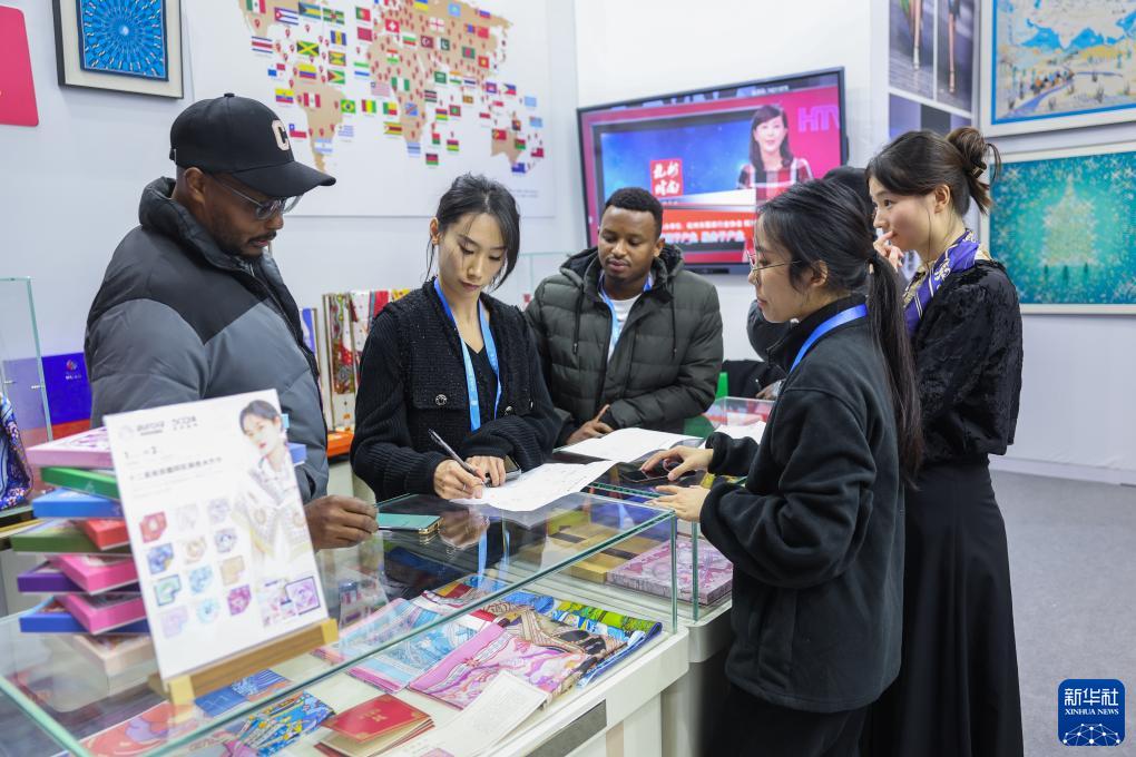 客商在第二屆全球數字貿易博覽會的絲路電商館洽談業務(11月24日攝)。