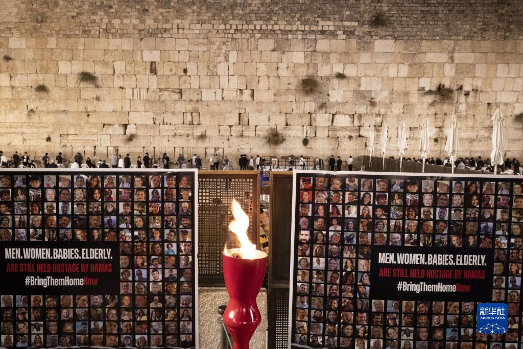 這是11月7日在耶路撒冷老城“哭墻”前拍攝的以色列被扣押人員海報。