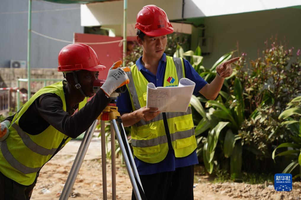 11月1日,中國工程師與當地工人在塞內加爾首都達喀爾的供水項目工地工作。