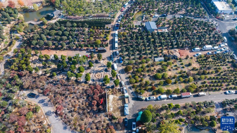 11月25日,空中俯瞰第二十一屆中國(金華)花卉苗木博覽會的舉辦地金華市金東區澧浦花木城(無人機照片),該花木城2022年銷售額突破30億元。