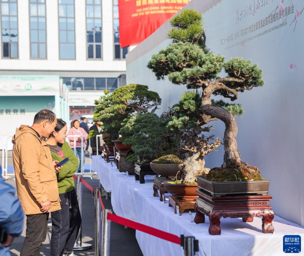 11月25日,客商在觀看第二十一屆中國(金華)花卉苗木博覽會上的盆景藝術展。