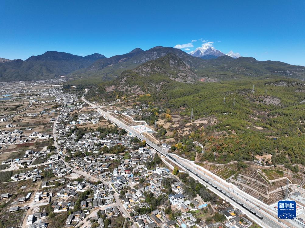 11月25日在麗江市境內(nèi)拍攝的即將開(kāi)通的麗香鐵路(無(wú)人機(jī)照片)。