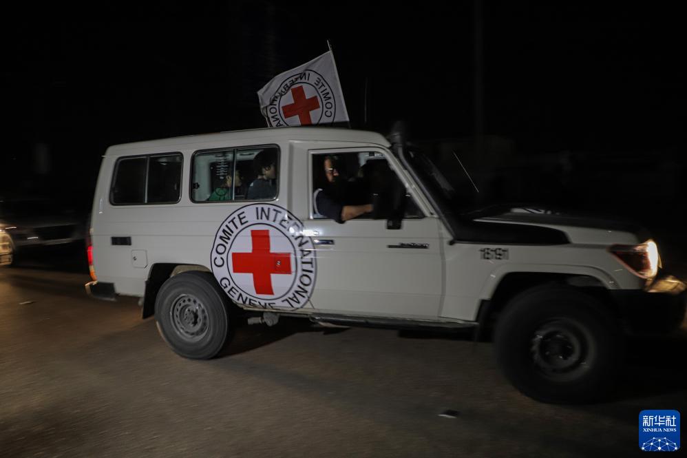 11月25日,紅十字國際委員會工作人員將被釋放人員送往加沙地帶南部拉法口岸。